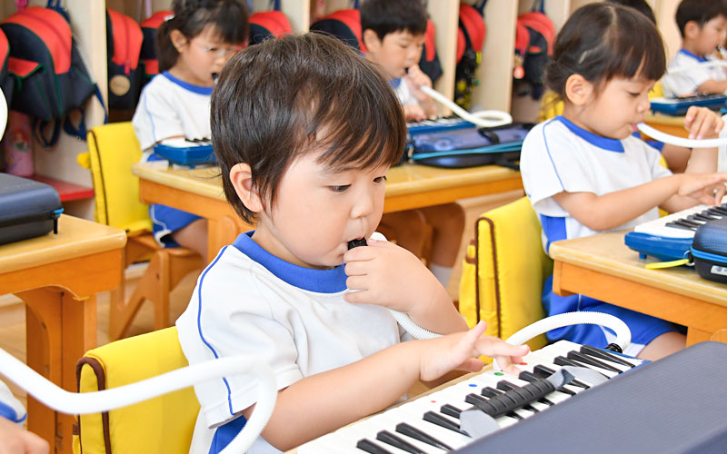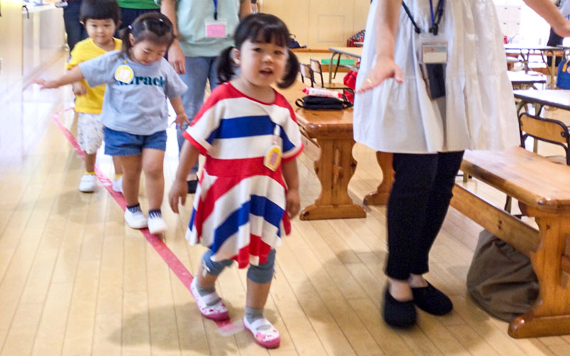 | 指導内容 | 体育・音楽・言語・絵画他、幼稚園生活に準じる活動(お母さんと一緒に行います)。集団に慣れる・自立心を養う・幼稚園に慣れる。 |
